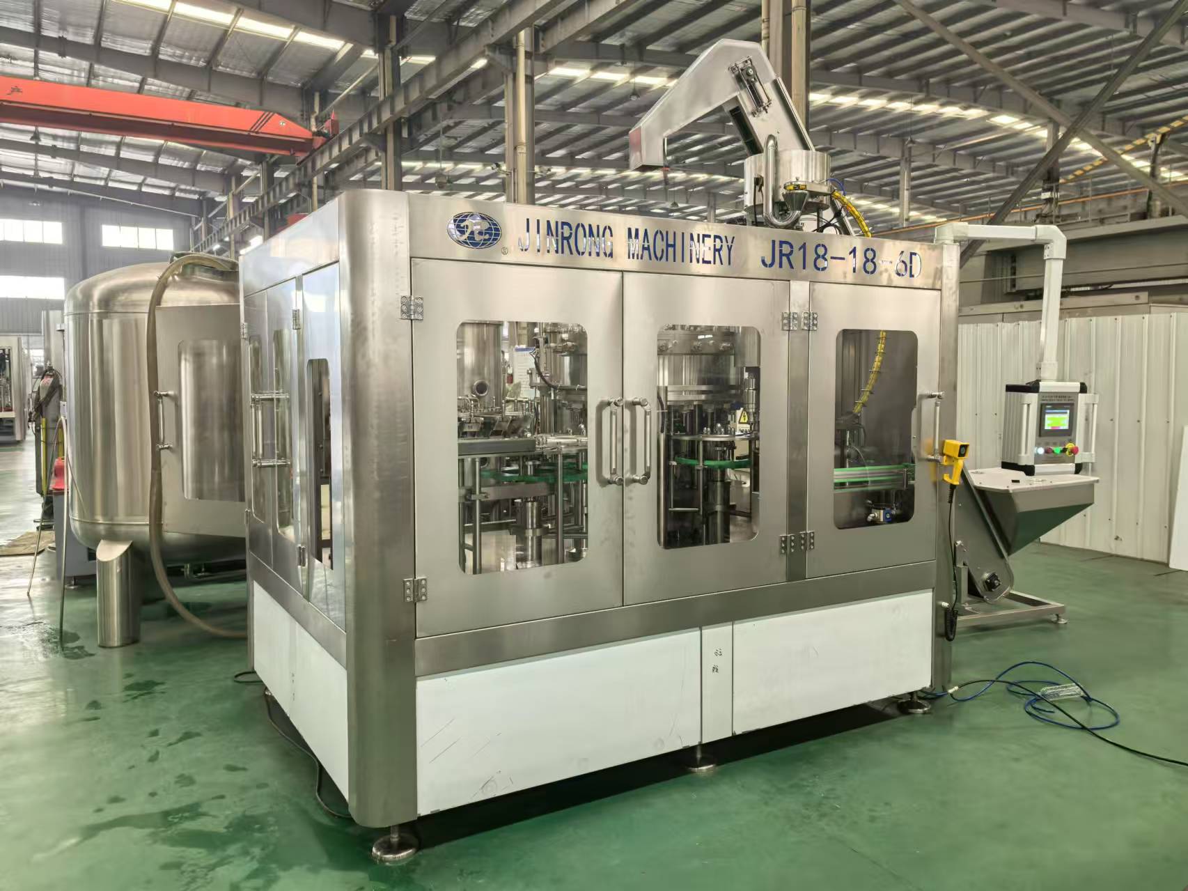 金榮飲料機械廠家制造供應的全套飲料生產(chǎn)線、果汁生產(chǎn)線、碳酸飲料生產(chǎn)線、小瓶礦泉水灌裝設備、大瓶水生產(chǎn)線、桶裝水生產(chǎn)線、純凈水灌裝機設備、瓶裝礦泉水灌裝生產(chǎn)線、易拉罐啤酒灌裝機等系列產(chǎn)品主要運用在純凈水,礦泉水,果汁,茶,熱灌裝飲料,功能飲料,含汽飲料,碳酸飲料,啤酒等液體飲料灌裝生產(chǎn)。其供應的灌裝生產(chǎn)線可配套全自動吹瓶機、水處理設備、前處理設備、飲料殺菌設備、貼標機、包裝機等相關配套機械設備。金榮多年來的設備研發(fā)和制造經(jīng)驗,讓金榮機械為飲料生產(chǎn)企業(yè)和水廠等提供了穩(wěn)定的全套灌裝生產(chǎn)線設備。